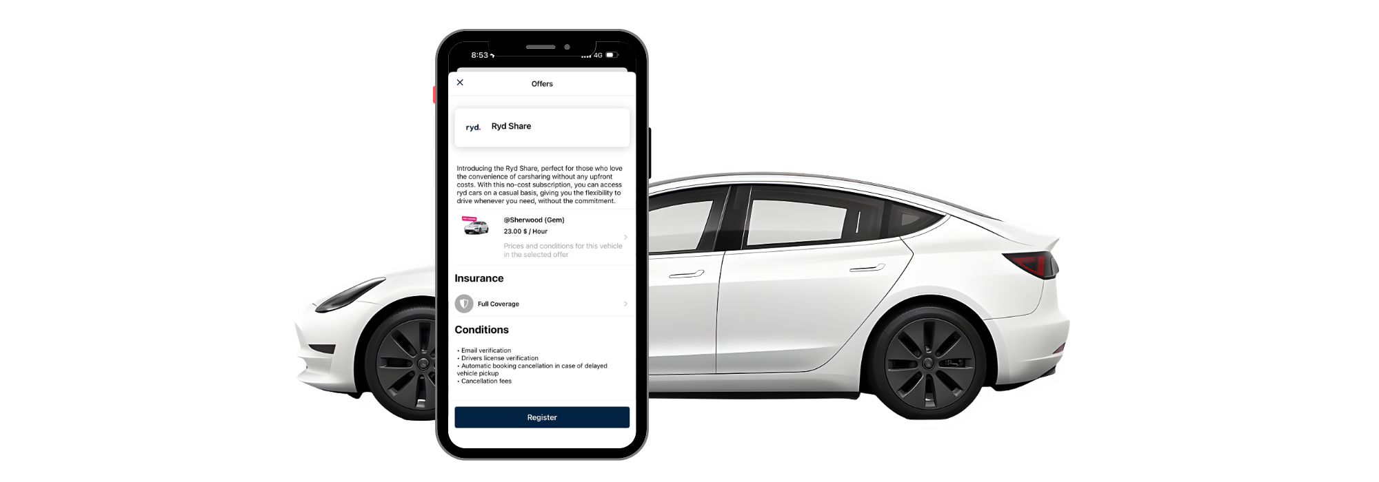 Any verified driver aged 21+ with a full driver’s licence can use RYD. Once verified in the app (a one-time process), you can book and drive anytime without further checks.