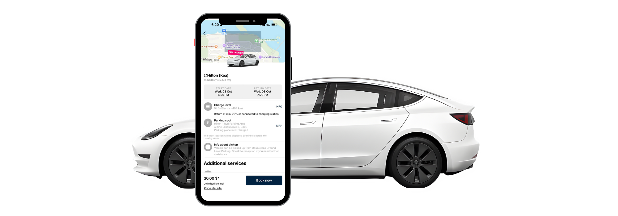 Sleek design, premium comfort, and cutting-edge tech. A stylish all-electric choice for business travellers or anyone who wants to drive in luxury. Starts from $29 an hour or $199 a day with FREE charging.