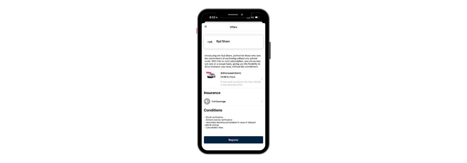 Book in minutes — all in the RYD app. See live car availability and pricing